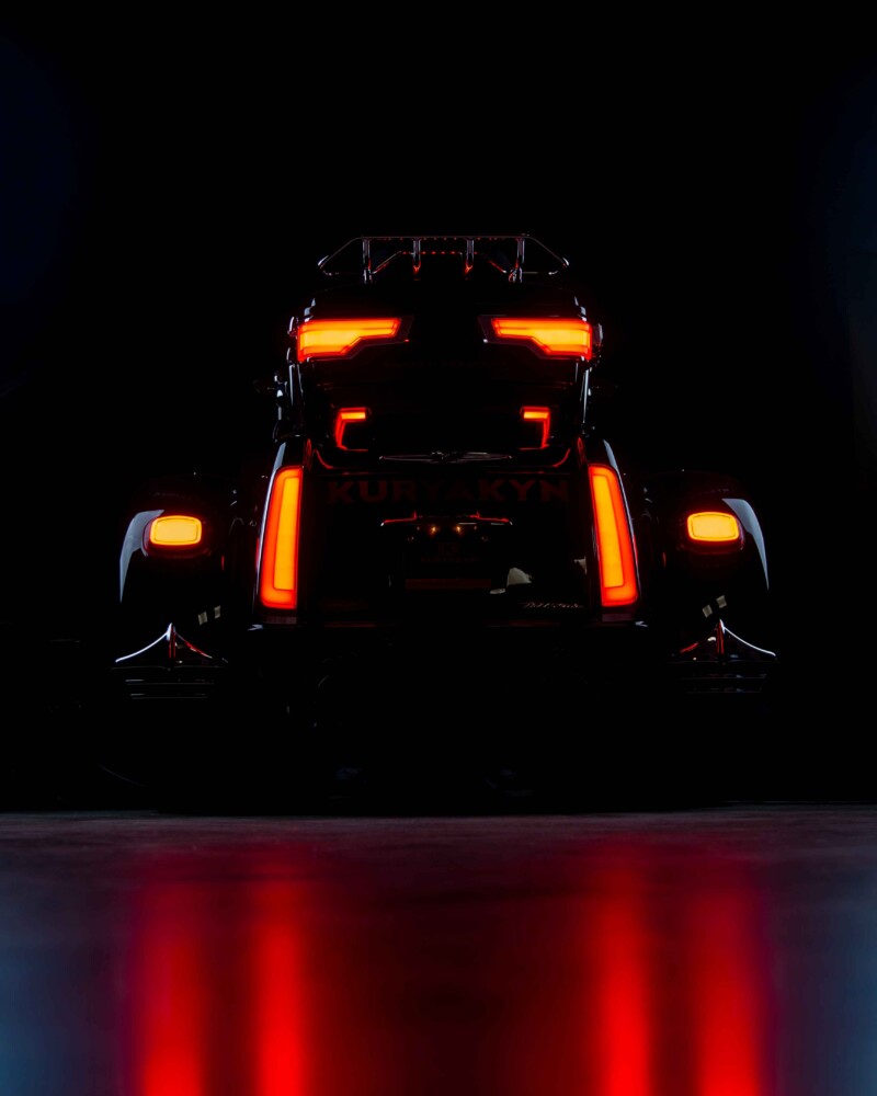 For the three-wheel market, Kuryakyn is introducing Tracer LED lighting solutions for 2009 and up Harley-Davidson Tri Glide models. These include direct plug-and-play taillights that utilize racetrack-style, fully diffused LED technology for a crisp, uniform output without shadowing. Additionally, new LED Rear Trunk Lights featuring lightweight ABS housings and polycarbonate lenses have been developed to conceal exposed hardware and provide a clean, integrated look for the rear of the trike.