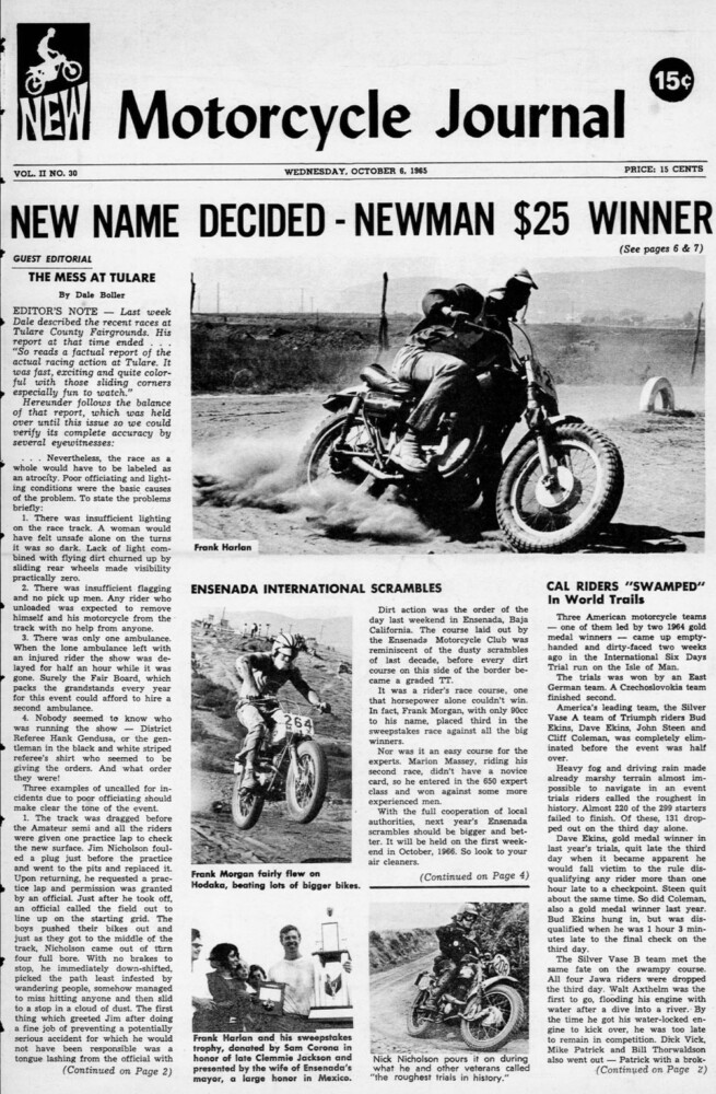 The first issue with the Cycle News name appeared in October 1965. ‘Cycle News’ was chosen as the winning name through a contest with our readers.