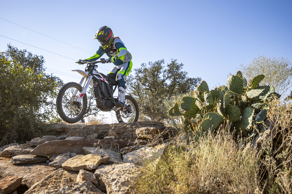 At an MSRP of $4395, the XB delivers impressive value. It comes with fully adjustable KKE forks and a shock with linkage that performs well even for my 165-pound frame. Several riders of varying sizes tested the bike during our session, and even larger riders enjoyed themselves. The motor generates 10 horsepower at the rear wheel, enough to keep things entertaining. Two power modes (Eco and Standard) let you tailor the performance, and there’s even a reverse function.