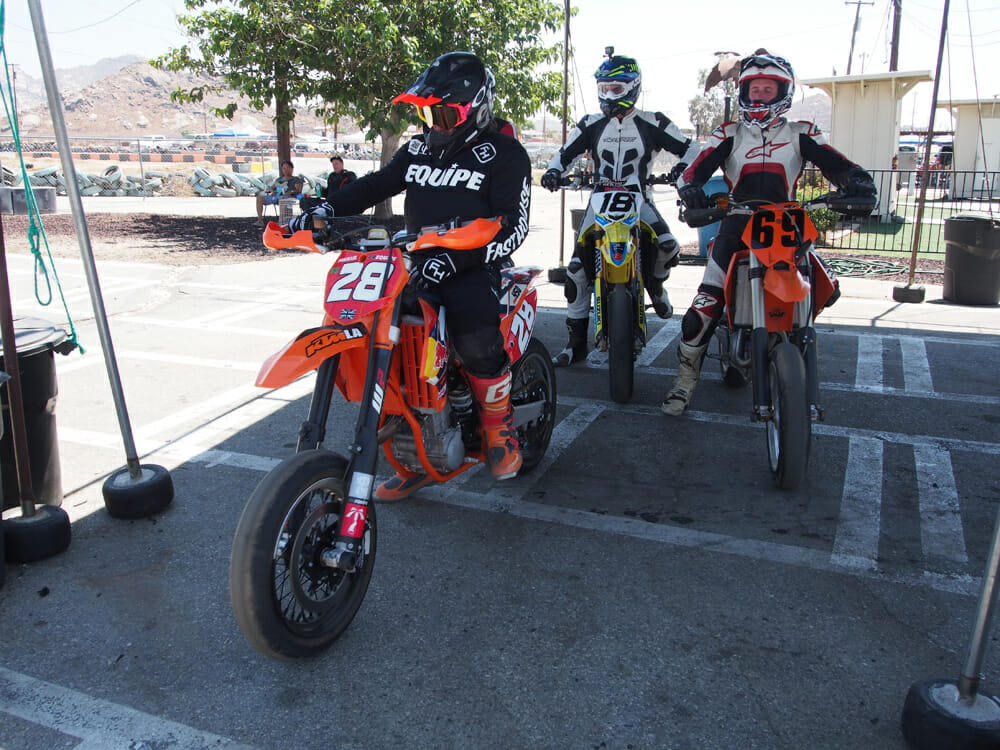 We headed out to round one of the 2018 WAR (West American Racing) Supermoto series, held at Apex Kart Track at Perris. This was the first time I’d ever raced supermoto and, even though the field wasn’t what you’d call packed, there were still about five riders capable of turning in super-fast laps on proper supermoto builds, rather than a half/half setup like our RM-Z.