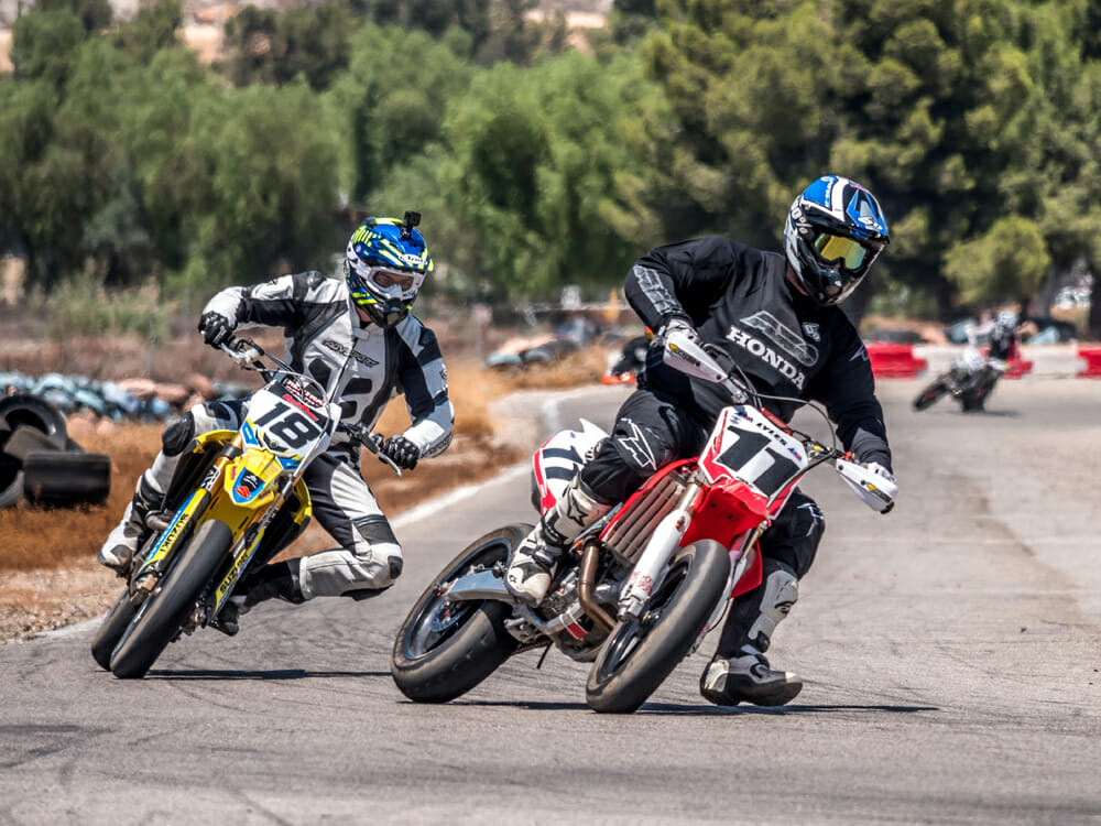 Supermoto racing is one of the most exciting things you can do with your clothes on. It’s a perfect mix of road racing, flat track and motocross, each discipline required at one point or another during the lap.