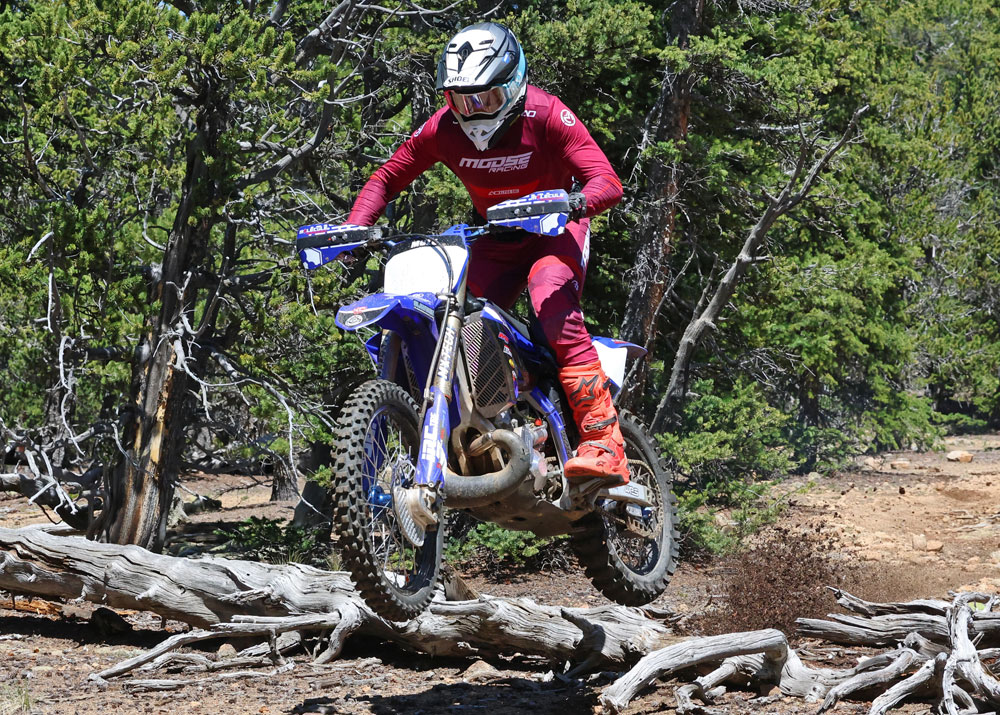 The MX-Tech suspension gives the YZ an “enduro” feel, that is for sure. The stock suspension leans a little on the stiff MX side, while the MX-Tech fork and shock have a cushier, trail-friendly feel. The Slavens team set up the bike for my weight and experience before I even got there, and I felt right at home on it from the get-go, never making any changes.
