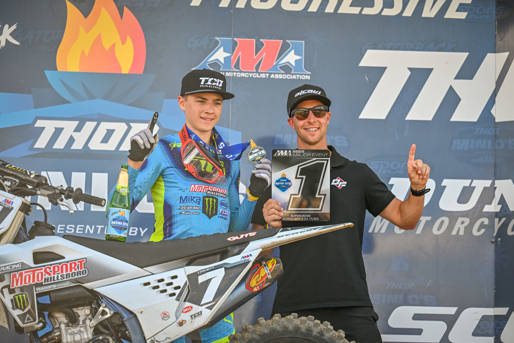 The overall in Supermini 2 (13-16) in MX and SX was won by Easton Graves (Husqvarna), and Graves also won Supermini 1 (12-15) Motocross. GasGas riders Elliott Bowsher (second) and Chase Dashiell (third) completed the Supermini 2 (13-16) Supercross overall podium, while in the same class in the Motocross division, Dashiell was second overall and Cash Anderson third.