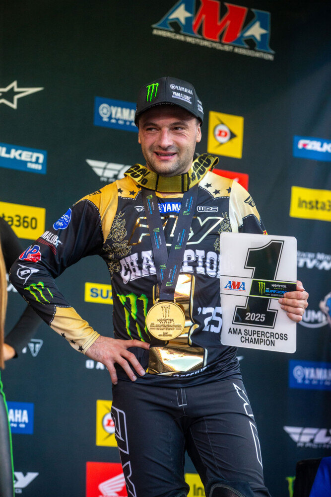 “2025 took everything I had experience-wise. We’re racing some of the best of all the generations now. We’re racing against the younger guys, the guys my age, the guys like Eli and Kenny who are a little bit older. I mean, it’s by far the most stacked this class has ever been. There was some injury stuff I had to deal with here and there, but I put myself in a good position. To go head-to-head there with Chase Sexton at the end was pretty gnarly because he’s such an amazing athlete and champion of our sport. He’s probably one of the most talented guys to ever do it. For me it was perseverance. After four years of not winning, with ups and downs, ebbs and flows, injuries, team changes, and all that kind of stuff, just winning was awesome. Things were kind of stacked up against me, so when I was able to push through it and get a championship, not only for myself, but for everyone involved, it’s awesome. As I said, for us, year after year, the main goal is Supercross, and I was able to accomplish that goal in winning the Supercross Championship.”