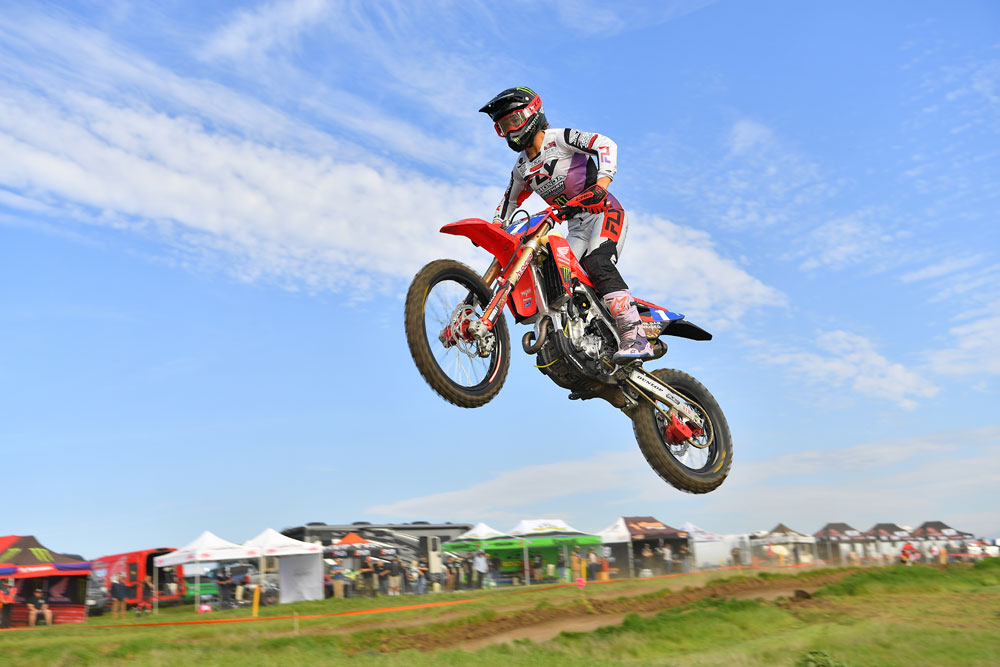 With two-time Pro II champ Mason Semmens moving to the Open Pros this year, his roommate and fellow Aussie Sam Pretscherer took his place at the front of the stacked Pro II field, which was a nice way to kick off his new status as an SLR Honda rider. Despite a slow start on his Progressive/Southern Powersports/Maxima CRF250RX, last year’s Pro II runner-up picked his way through the pack and snapped up the lead from class leader Cole Zeller around the halfway mark. From there, he managed to stay a couple of seconds ahead of the new FMF/RPM Racing KTM rider to the finish.